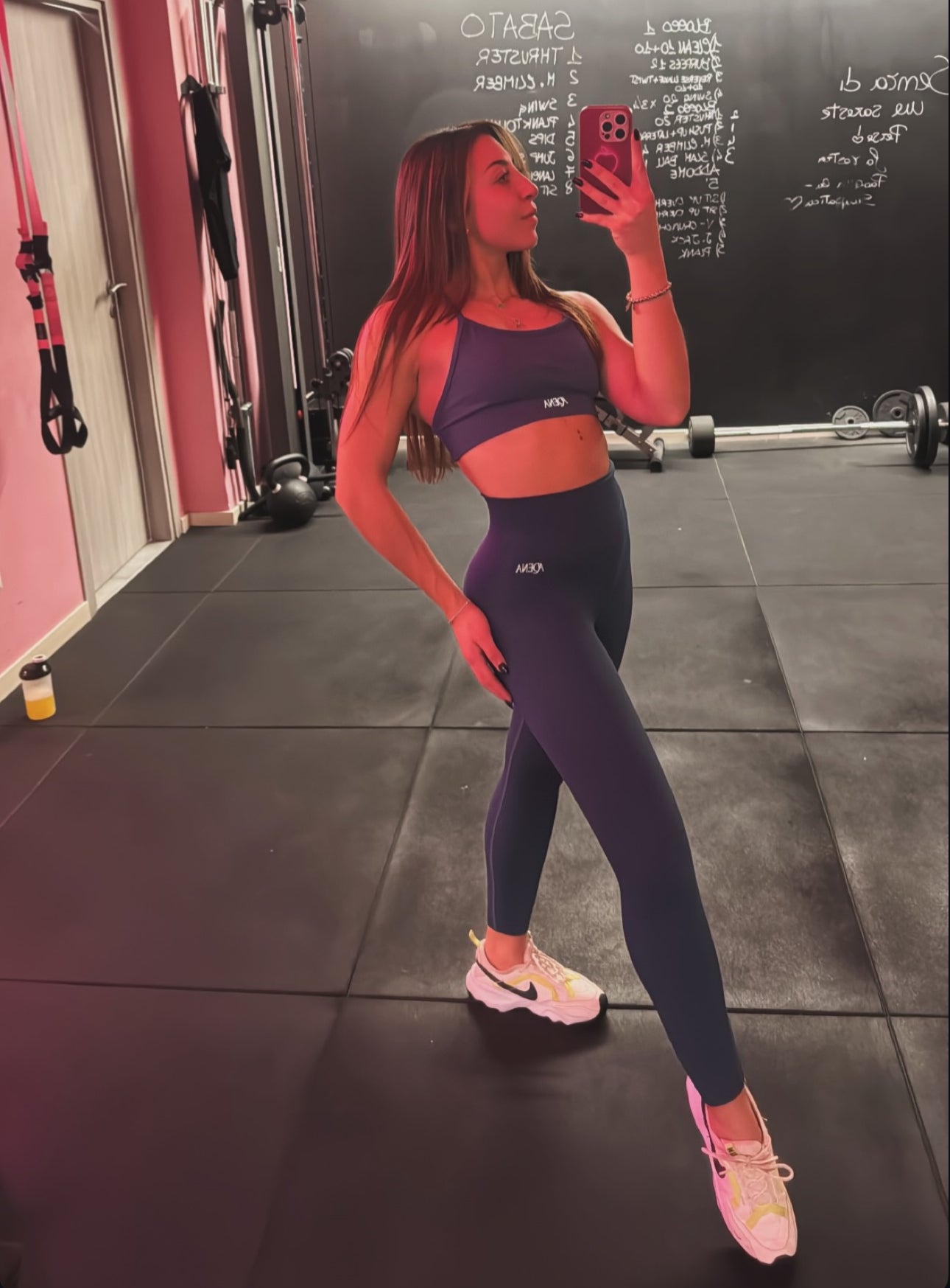 Ho una mia palestra, insegno a tante donne tutti i giorni e tutto il giorno, ho bisogno di comodità ma anche di mostrarmi al meglio alle mie clienti. Quando indosso il set Ella mi sento al top e le mie allieve lo notano! - Faby